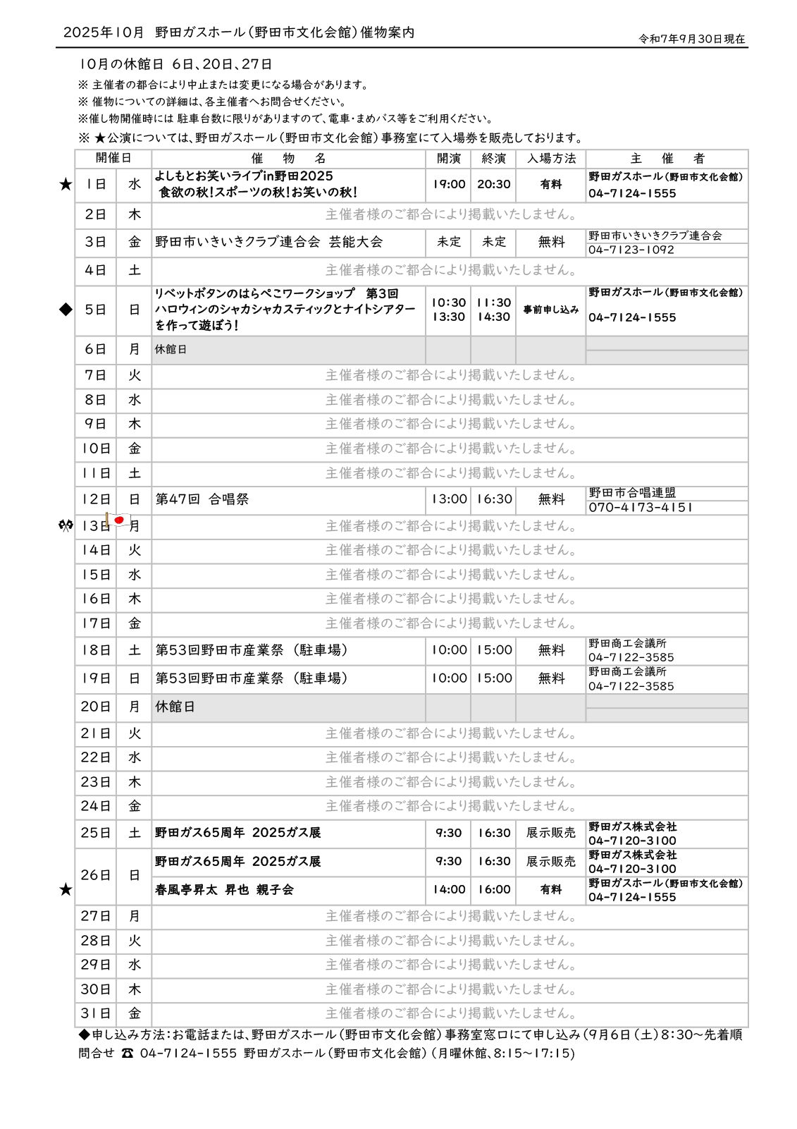 催し物案内(2025年10月)