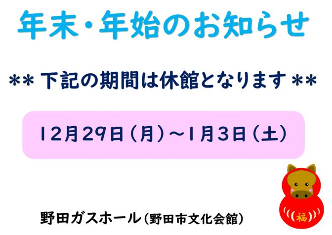 年末年始の休館日について